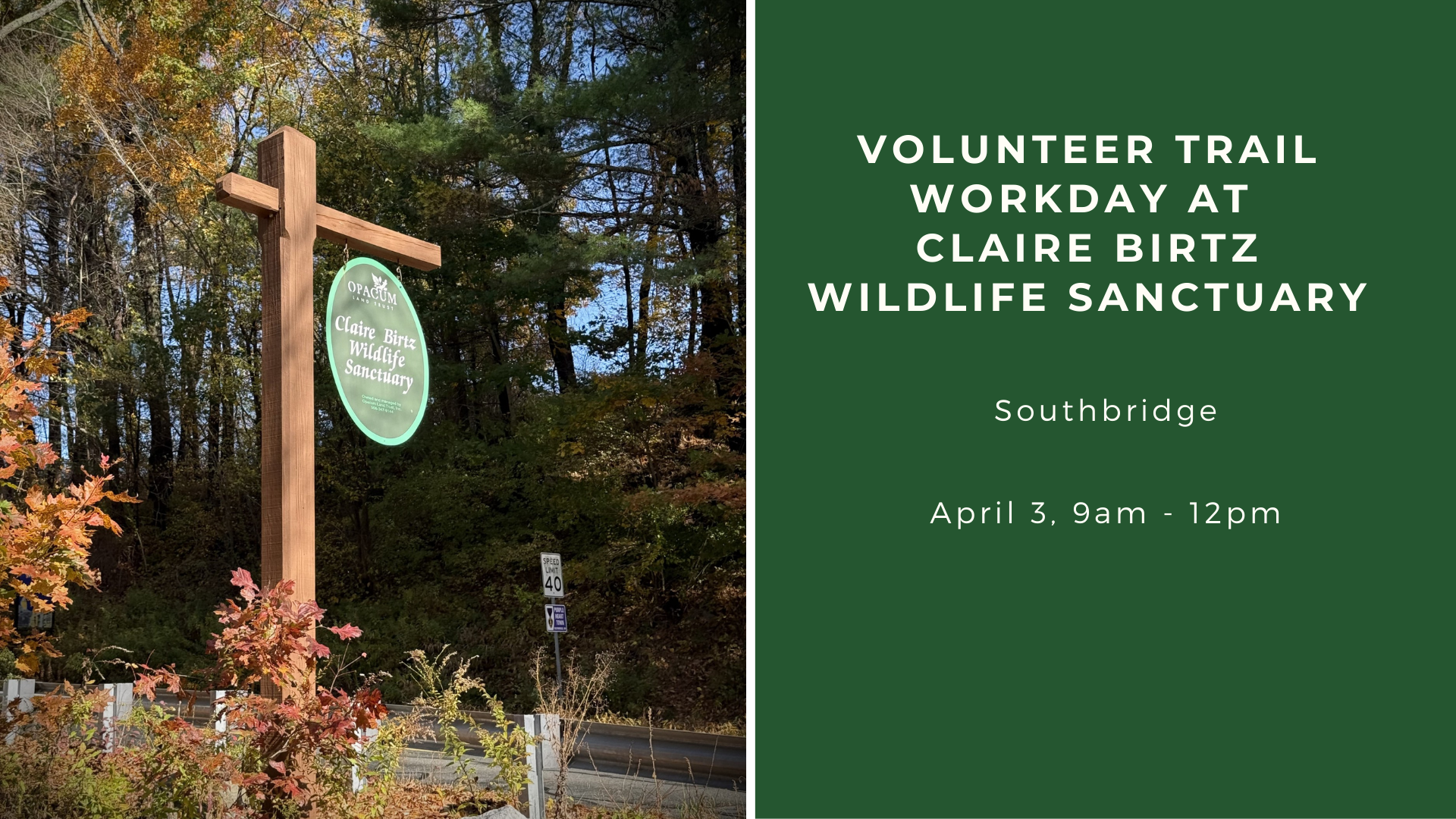 Where: Claire Birtz Wildlife Sanctuary. Tipton Rock Rd., Southbridge MA
