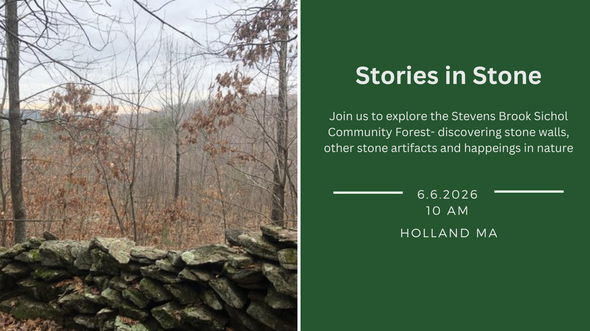 Where: Stevens Brook Sichol Community Forest, Blodgett Road, Holland MA